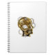 Conceptual, mechanical, human head with antique manometer and metal gears against grey industrial background. Steampunk style.