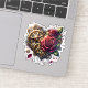 Stickers with a pretty graphic of a steampunk metal gold and copper heart with red roses.