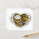 Mechanical, volumetric, steampunk heart with pressure gauge, steel and gold gears on white background. Steampunk style.