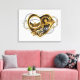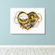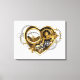 Mechanical, volumetric, steampunk heart with pressure gauge, steel and gold gears on white background. Steampunk style.
