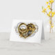 Mechanical, volumetric, steampunk heart with pressure gauge, steel and gold gears on white background. Steampunk style.