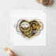 Mechanical, volumetric, steampunk heart with pressure gauge, steel and gold gears on white background. Steampunk style.