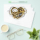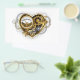 Mechanical, volumetric, steampunk heart with pressure gauge, steel and gold gears on white background. Steampunk style.