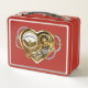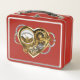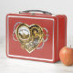 This is a standard metal lunchbox that appears to work just fine. We designed this box ourselves with an uploaded photo and custom text on the front and back. It looks absolutely beautiful except the front of the lunchbox is not centered like it shows in the photo. The print borders don't align with the inset flat part of the box where the preview photo online showed it perfectly centered in there. The back looks nice and centered though.