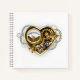 Mechanical, volumetric, steampunk heart with pressure gauge, steel and gold gears on white background. Steampunk style.