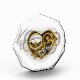 Mechanical, volumetric, steampunk heart with pressure gauge, steel and gold gears on white background. Steampunk style.