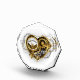 Mechanical, volumetric, steampunk heart with pressure gage, steel and gold gears on white background. Steampunk style.