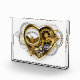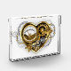 Mechanical, volumetric, steampunk heart with pressure gauge, steel and gold gears on white background. Steampunk style.