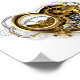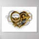 Mechanical, volumetric, steampunk heart with pressure gauge, steel and gold gears on white background. Steampunk style.
