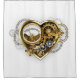 Mechanical, volumetric, steampunk heart with pressure gauge, steel and gold gears on white background. Steampunk style.