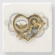 Mechanical, volumetric, steampunk heart with pressure gauge, steel and gold gears on white background. Steampunk style.