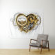 Mechanical, volumetric, steampunk heart with pressure gauge, steel and gold gears on white background. Steampunk style.