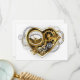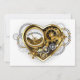 Mechanical, volumetric, steampunk heart with pressure gauge, steel and gold gears on white background. Steampunk style.