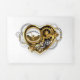 Mechanical, volumetric, steampunk heart with pressure gauge, steel and gold gears on white background. Steampunk style.
