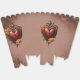 Steampunk Heart with Flowers. A steampunk-style heart, predominantly red with visible cracks, encased in an ornate golden frame. The frame incorporates clockwork elements and is adorned with orange flowers. The background is a soft, muted pink with floral patterns in gold and brown. The overall mood is romantic with a touch of vintage and mechanical aesthetics.