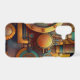 A bold steampunk-inspired geometric artwork featuring metallic circles, brass panels, pipes, bolts, and mechanical structures fused into an abstract industrial composition. The rich blend of teal, copper, and gold tones gives the piece a warm retro-futuristic atmosphere. Perfect for tech accessories, posters, home decor, apparel, and gifts for fans of steampunk, machinery, and industrial design.