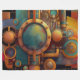 A bold steampunk-inspired geometric artwork featuring metallic circles, brass panels, pipes, bolts, and mechanical structures fused into an abstract industrial composition. The rich blend of teal, copper, and gold tones gives the piece a warm retro-futuristic atmosphere. Perfect for tech accessories, posters, home decor, apparel, and gifts for fans of steampunk, machinery, and industrial design.