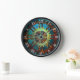 The size of the clock is dramatic and the abstract alcohol ink design is soothing and intricate at the same time. I chose the black frame that adds pop to the blue and gold design. The gold printing would be better in a slightly darker or larger font. I love it and I’m looking for just the right place in ny new apartment. I would recommend this clock for a personal gift or a present. I feel that the quality is excellent for the money! I’m a bit of a clock nut so I’m pretty particular about my purchases. The clock is larger in diameter than many if the clocks I have, so it stands out very well. I think a slightly darker printing color and a moderately larger size would best suit a professional decor or add more impact in a work place item.