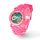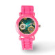 Jewellery, gold watch with a gold chain and keys on a green textural background. Steampunk style.
