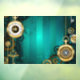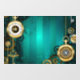 Jewellery, gold watch with a gold chain and keys on a green textural background. Steampunk style.
