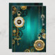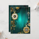 Jewellery, gold watch with a gold chain and keys on a green textural background. Steampunk style.
