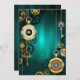 Jewellery, gold watch with a gold chain and keys on a green textural background. Steampunk style.