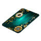Jewellery, gold watch with a gold chain and keys on a green textural background. Steampunk style.
