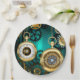 Steampunk Jewellery Watch on a Green Background Paper Plate