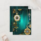 Jewellery, gold watch with a gold chain and keys on a green textural background. Steampunk style.
