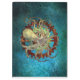 Steampunk inspired industrial rusty clockwork gears, and octopus design on a vibrant blue patina background.