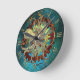 Steampunk inspired industrial rusty clockwork gears, and octopus design on a vibrant blue patina background.