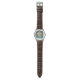 I was uncertain about the size being too small but it looks good. The case looks like aluminum (not shiny) and the time is easy to see. I changed the band because the leather doesn't go with my lifestyle.a. Exactly what I expected, nice yellow. It grabs peoples attention.