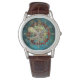 Steampunk inspired industrial rusty clockwork gears, and octopus design on a vibrant blue patina background.