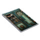 A steampunk secret is carried in this teal notebook with intricate wheels and fittings behind glass panel doors with brass handles and bolts. An interesting story to capture their imagination with our eye catching steampunk puzzle door, use this notebook as a journal, for class notes, for short stories or poetry, or as extra scrap paper in a quirky looking notebook cover.