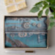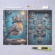 Steampunk robin adorned with gears and clocks, set against a blue background. Ideal for furniture restyling and other creative projects.