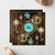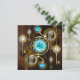 Turquoise lenses with an antique watch with brass gears and golden keys on rusty, brown background. Steampunk style.