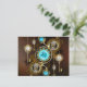 Turquoise lenses with an antique watch with brass gears and golden keys on rusty, brown background. Steampunk style.