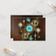 Turquoise lenses with an antique watch with brass gears and golden keys on rusty, brown background. Steampunk style.