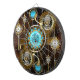 Turquoise lenses with an antique watch with brass gears and golden keys on rusty, brown background. Steampunk style.