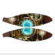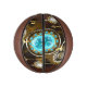 Turquoise lenses with an antique watch with brass gears and golden keys on rusty, brown background. Steampunk style.