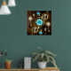 Steampunk Rusty Background with Turquoise Lenses Poster