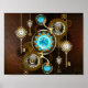 Steampunk Rusty Background with Turquoise Lenses Poster