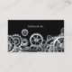 Steampunk style business card, with black background with 3-dimensional silver gears.