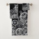 Steampunk style towel set, with black background with 3-dimensional silver gears.