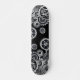 Steampunk style skateboard, with black background with 3-dimensional silver gears.