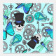 Steampunk Skulls and Gears Pattern Blue Wallpaper