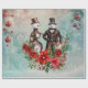 steampunk snowman and steampunk snowwoman wrapping paper