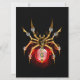 Mechanical, steampunk spider with gold, brass gears and a red glass lamp on a black background. Steampunk style.