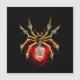 Mechanical, steampunk spider with gold, brass gears and a red glass lamp on a black background. Steampunk style.