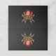 Mechanical, steampunk spider with gold, brass gears and a red glass lamp on a black background. Steampunk style.